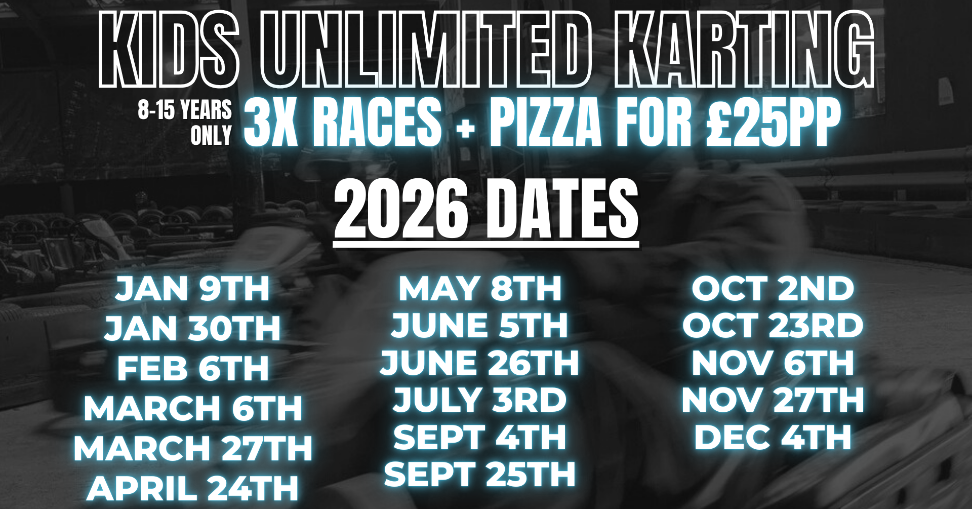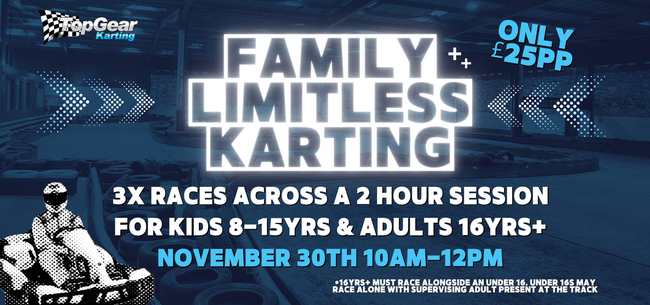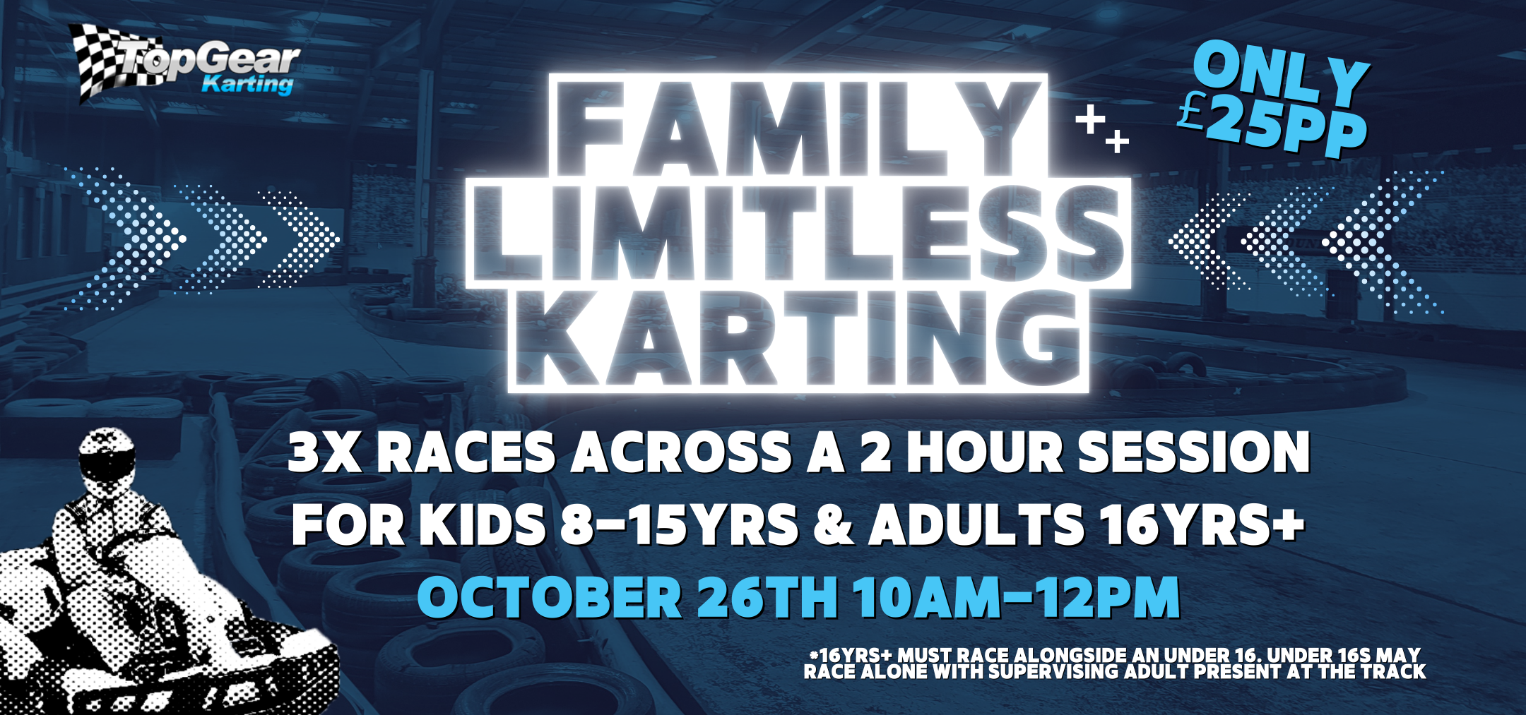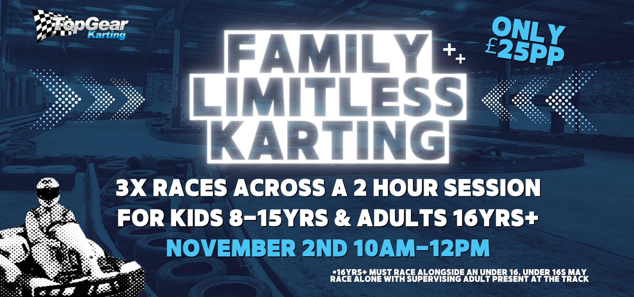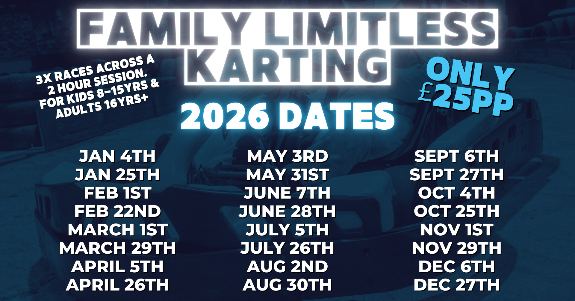 Our track caters for adults and juniors from 8 years upwards (min height 4ft 2in) and all safety equipment is provided. Check out our blog post “Why Karting Has A Height Restriction” for further information on height requirement.