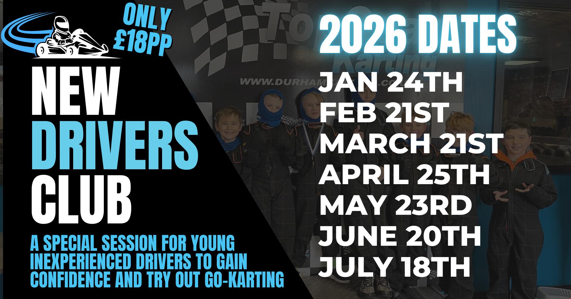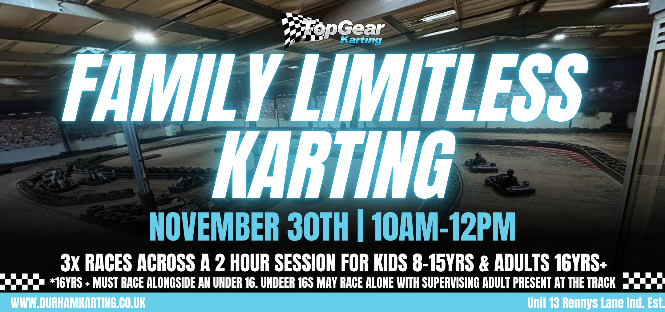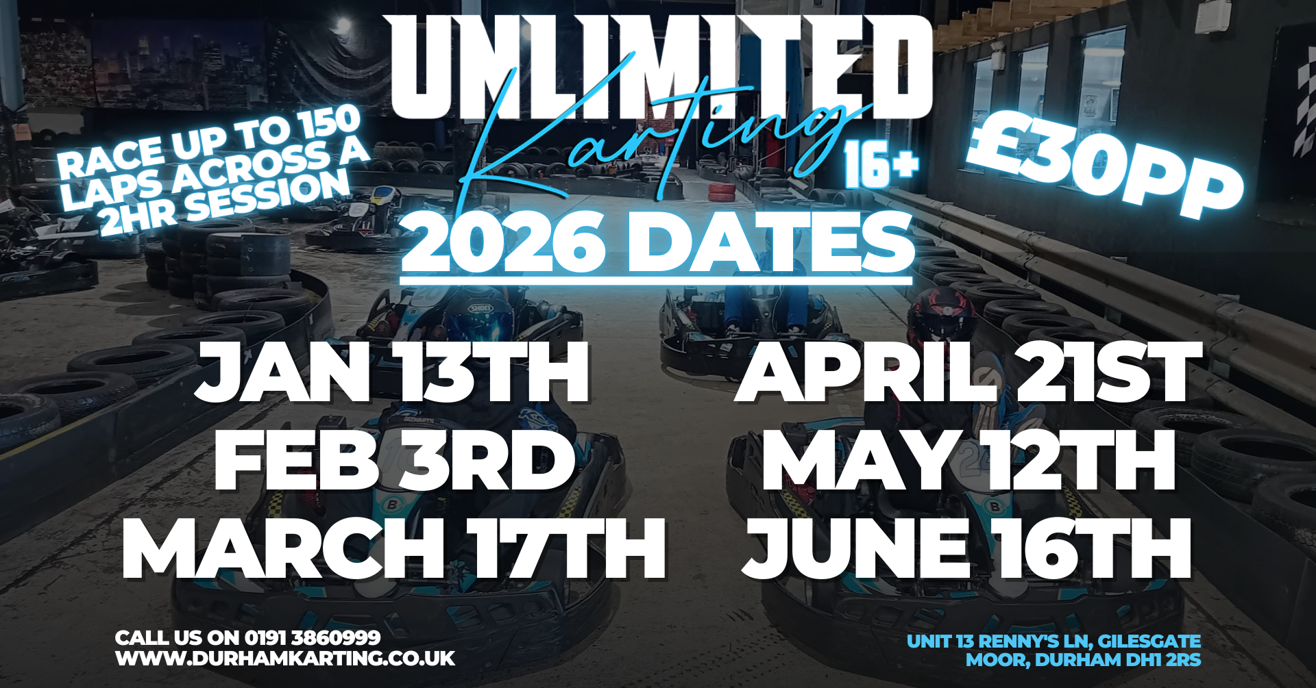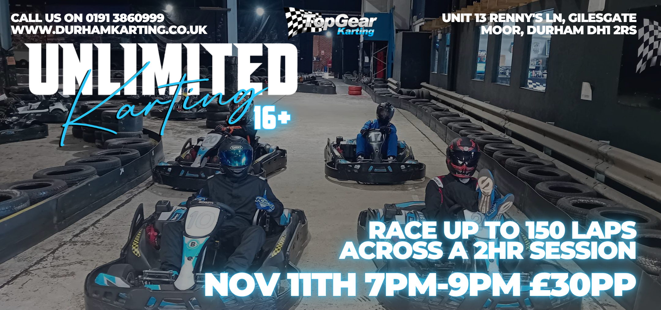 Our 200m indoor go karting track is ideally located in Durham - so if you’re looking for Go Karting Newcastle, Go Karting Sunderland, Go Karting Durham, Go Karting Darlington, Go Karting Middlesbrough or Go Karting Teesside, we can offer you the finest go kart experience in the North East!